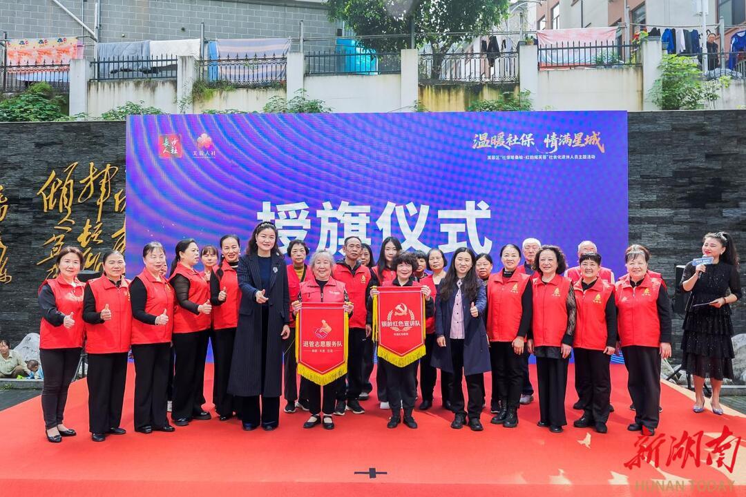 现场举行“银龄红色宣讲队”“退管志愿服务队”授旗仪式。两支队伍作为芙蓉区传承红色文化、护航银龄生活的重要力量,将承担起红色宣讲、社保志愿服务等职责,成为红色基因的“传声筒”、社保服务的“勤务员”,为退休人员社会化服务注入新活力。