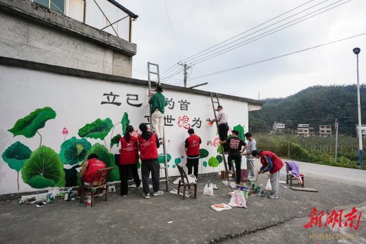 学院组建“绘美乡村”志愿服务队,以暑期“三下乡”社会实践为抓手,由党员教师带队,组织入党积极分子与装饰专业学子深入常宁市瑶族乡等乡村一线,精心绘制主题文化墙,将廉洁文化、湖湘风貌、民族团结等内容融入乡村景观,两年来累计绘制文化墙超2000平方米,覆盖4个行政村,为乡村文化振兴添砖加瓦。同时,志愿者们还将墙绘创作与普通话下乡推广、党史宣讲、高铁发展科普相结合,与当地村民暖心互动,切实把专业技能转化为服务基层的实际行动。相关活动成效得到当地政府与村民的高度认可,先后被省市级主流媒体报道,充分展现了学院学子奉献社会、服务人民的青春风采,充分展现了学院学子的责任与担当,让詹天佑精神在基层一线落地生根。