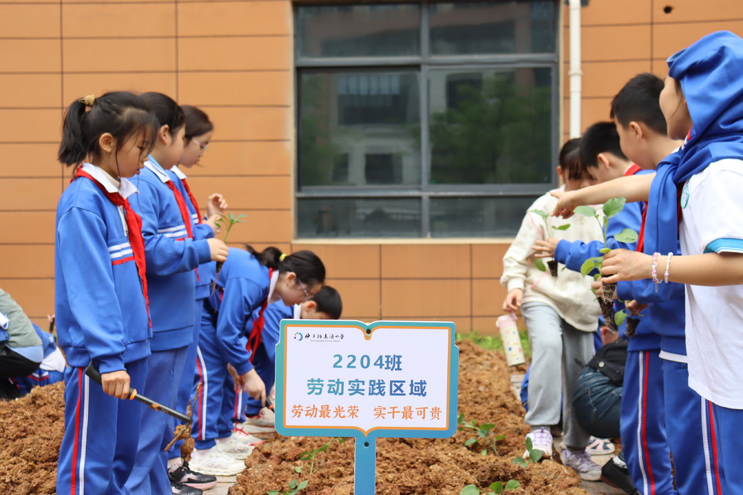 春风送暖,沃土生金。为深入推进雨花区“身心健康育人行动月”,让劳动教育在校园落地生根,4月17日下午,砂子塘嘉汇小学隆重举行“耕读润童心 劳动最光荣”校园劳动实践基地开耕仪式。四、五年级全体师生及家长志愿者代表齐聚一堂,以锄为笔、以汗为墨,共同开启了一堂生动的劳动教育实践课。