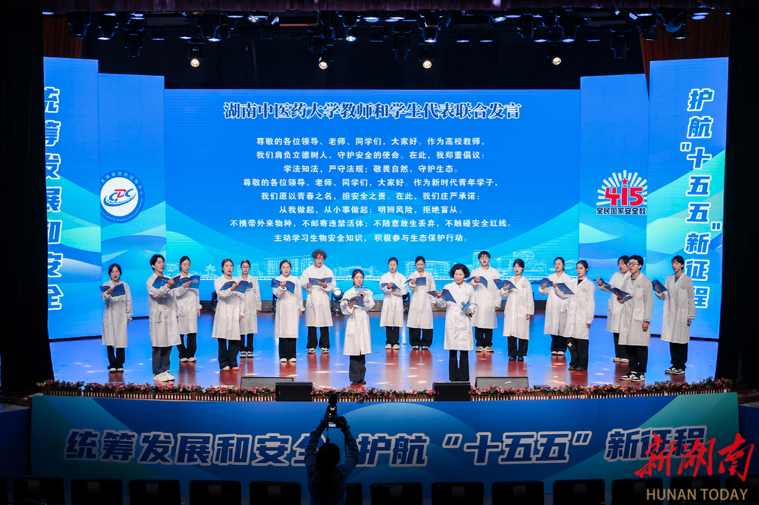 “不携带,不邮寄,不随意放生。要申报,要检疫,要科学求证。生物安全,没有旁观者,人人都是责任人……”4月17日,湖南中医药大学校园内,该校师生代表声音洪亮地发出联合倡议。台下数百名师生的掌声,拉开了2026年《生物安全法》进高校宣传教育活动的序幕。