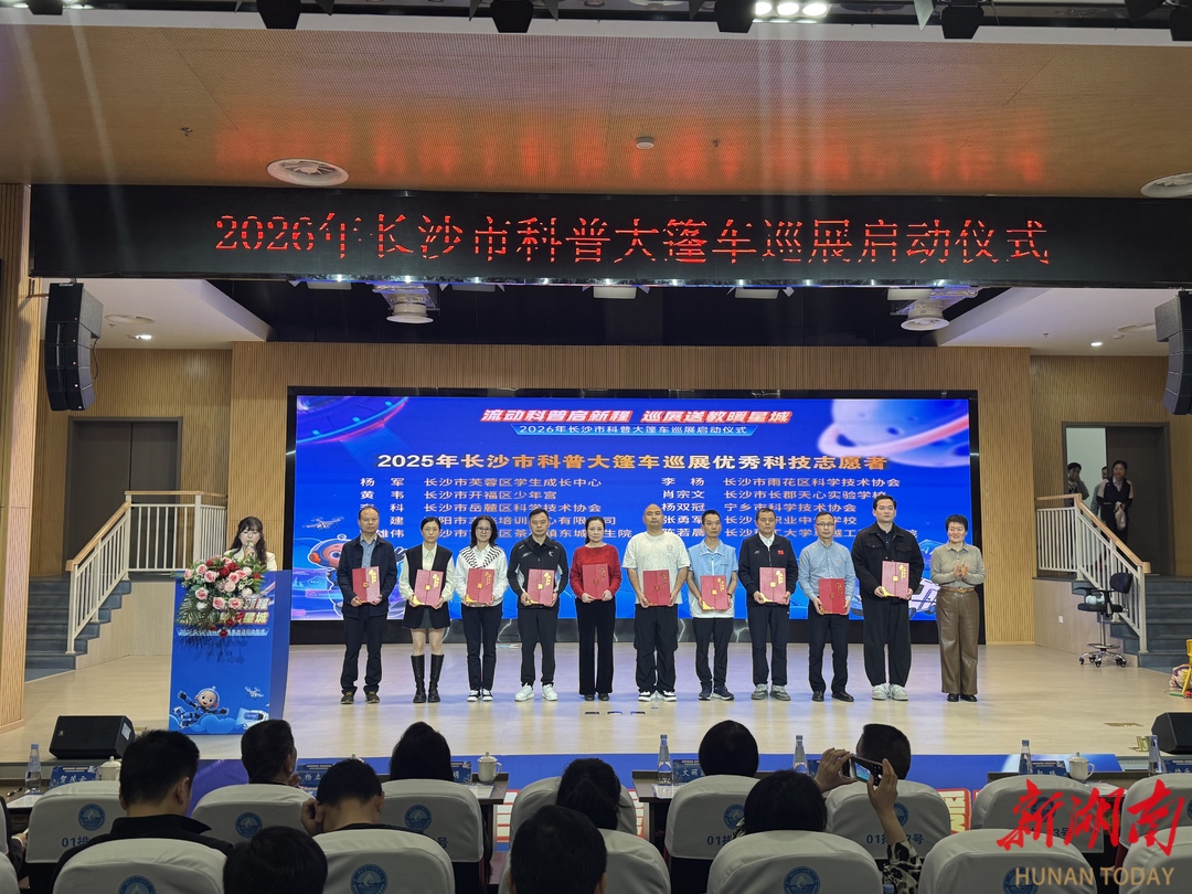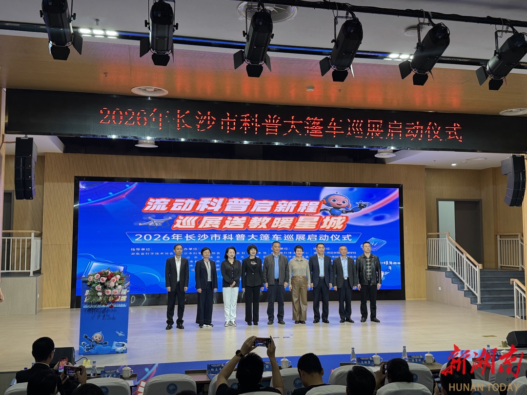 湖南日报·新湖南客户端4月17日讯(记者 唐璐)今天下午,2026年长沙市科普大篷车巡展启动仪式在湖南第一师范学院大泽湖学校举行。本次活动以“流动科普启新程 巡展送教暖星城”为主题,旨在推动优质科普资源下沉基层,服务城乡科普教育均衡发展。