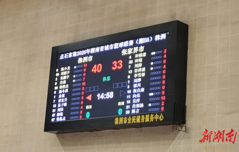 湖南日报·新湖南客户端4月17日讯(记者 张咪 实习生 汤光辉)今晚,2026年“湘BA”株洲主场第三场赛事在株洲体育中心激情开打,经过激烈的比赛,半场比分40:33,株洲队暂时领先张家界队。