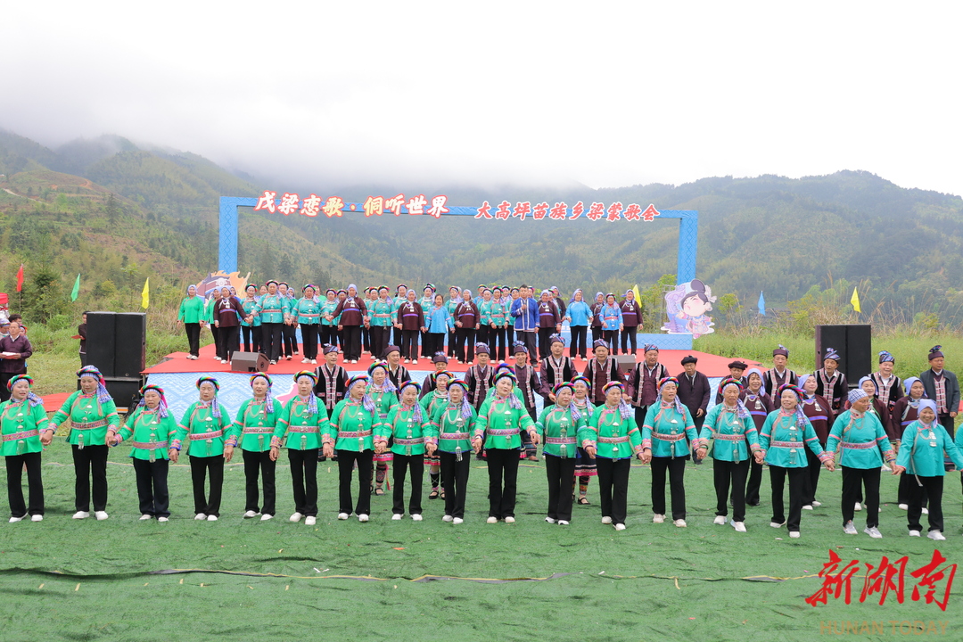 湖南日报·新湖南客户端4月17日讯(通讯员 王院儒 杨新鸿)17日,一场汇聚民族文化精髓、展现民族团结情谊的梁蒙山歌会在通道侗族自治县大高坪苗族乡地了村精彩上演。来自湘、桂、黔三省(区)的各族群众身着盛装,欢聚一堂,用歌声传递情谊,用舞姿表达祝福,共同唱响民族团结的奋进之歌。