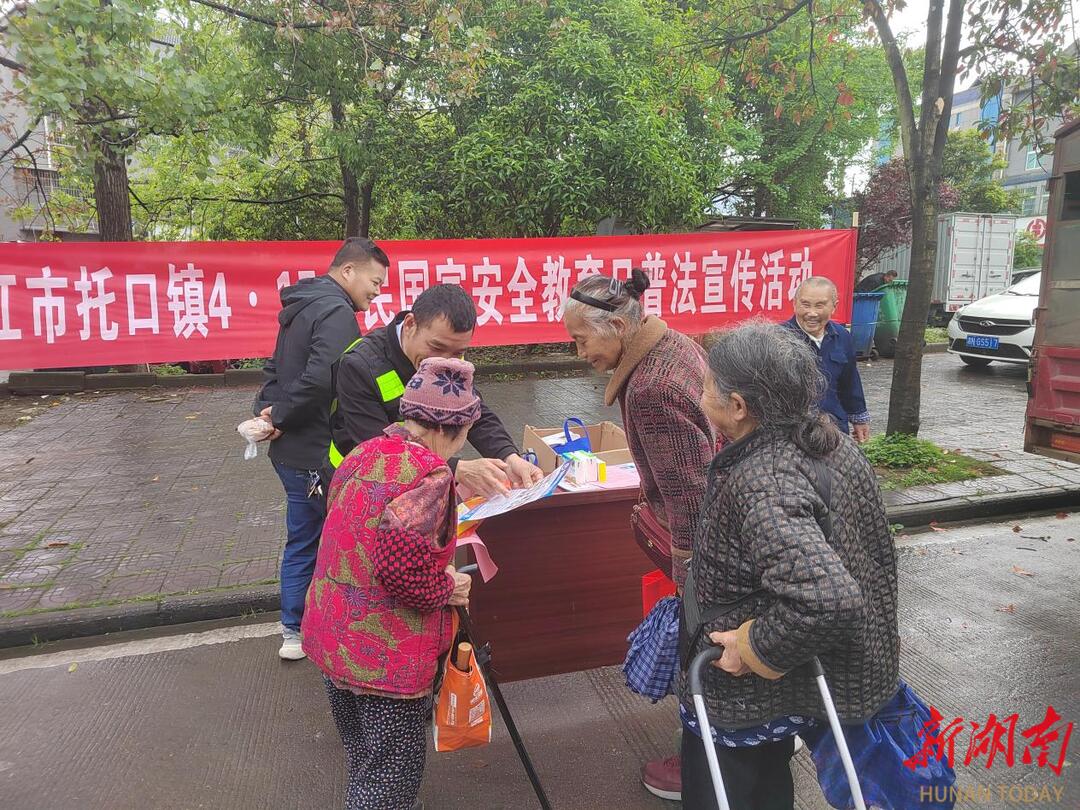 湖南日报·新湖南客户端4月17日讯(通讯员 曾容)4月16日,洪江市托口镇综治办联合司法所、民政办,抓住乡镇赶集日人流集中的有利契机,在集镇核心区域组织开展多主题普法宣传活动,推动国家安全、禁毒、扫黑除恶等法治知识直达基层、深入民心。