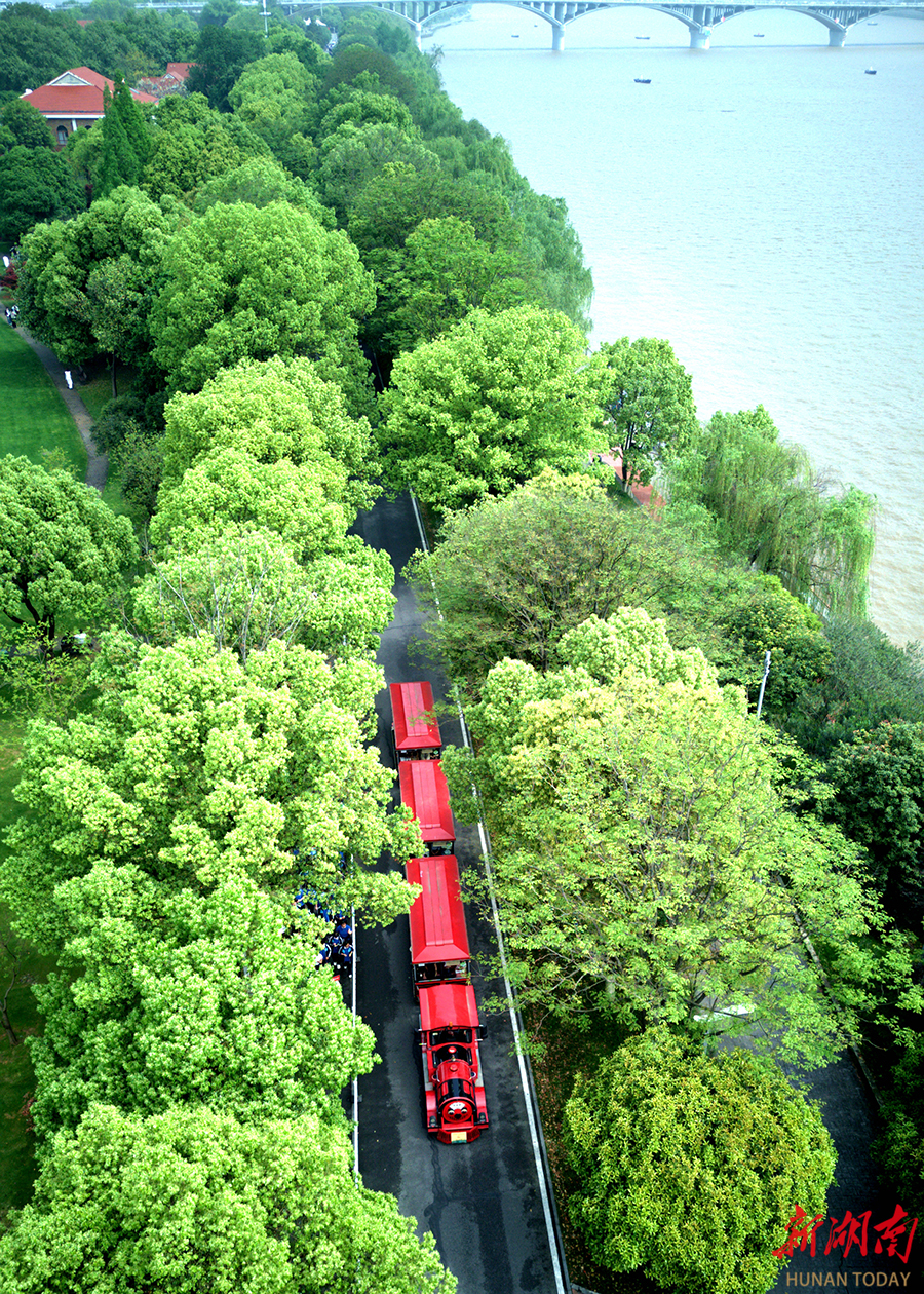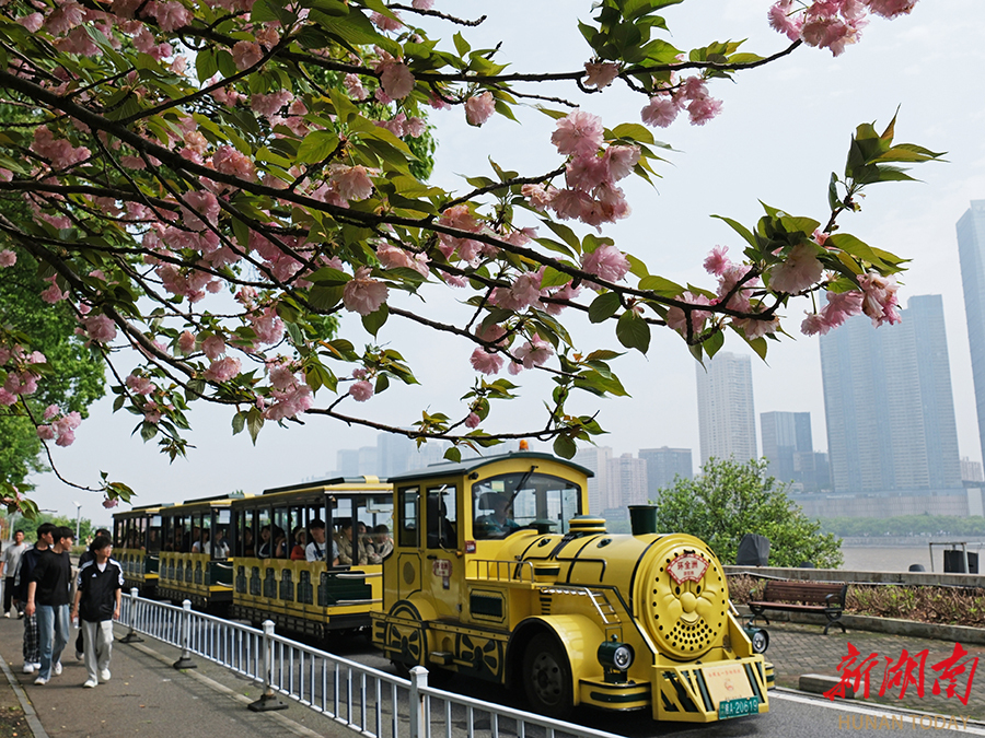 4月17日,游客乘坐小火车在观光游览。当前,长沙橘子洲景区春意正浓,满目新绿的景致吸引众多游客前来踏青游玩,尽享春日美好时光。 林道辉 摄(湖南图片库)