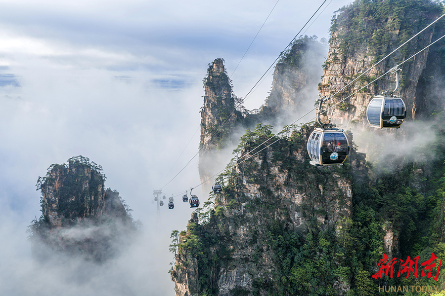 4月16日,张家界国家森林公园天子山景区,春雨初霁,山峰在云雾衬映下若隐若现,梦幻缥缈,蔚为壮观。吴勇兵 廖颂怡 摄影报道(湖南图片库)