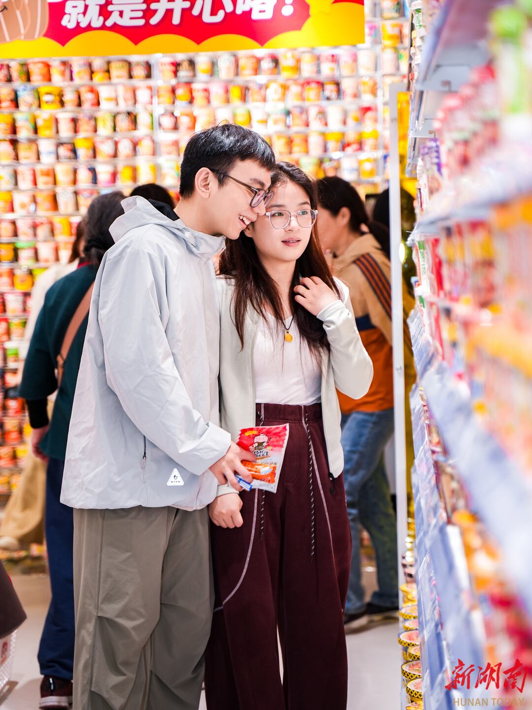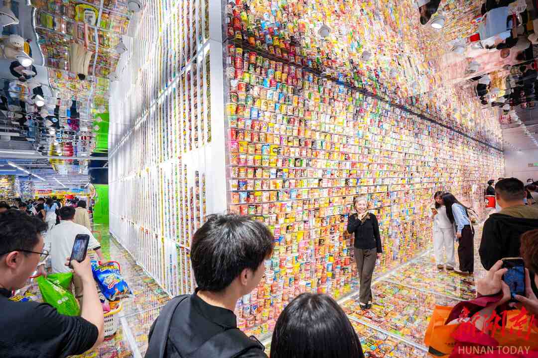“我们组团来湖南旅游,‘零食王国’是我们在长沙的最后一站。”记者遇到山东烟台游客罗福苓时,她们一行正边挑泡面边拍照,直呼“好玩又好逛”!
