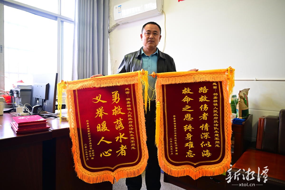 2025年12月,湘潭县政府为朱建军颁发了见义勇为证书。当年那位被他救起的老人,看到新闻后,定制了一面新锦旗,登门表示感谢。老人还特意邀请媒体采访报道,他紧握着朱建军的手说:“我实在无以回报,只能用这种方式让更多人知道,好人就在身边!”