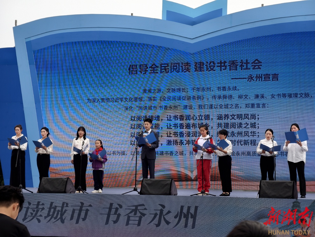 启动仪式上,全民阅读成果展、经典诵读、主题分享等环节精彩纷呈。祁阳市七里桥镇吴家坪村 "90 后"村支书漆倩以《稻香书声,乡韵伴读》为题,讲述乡村阅读推广故事;湘超永州队球员张涛带来《阅读路上永冲锋》分享,展现体育与阅读的交融碰撞;永州柳子中学师生现场演绎《小石潭记》片段,在经典诗文里传递永州深厚文化底蕴。全市阅读推广人及相关部门代表共同宣读《倡导全民阅读 建设书香社会 —— 永州宣言》,凝聚全民阅读合力。