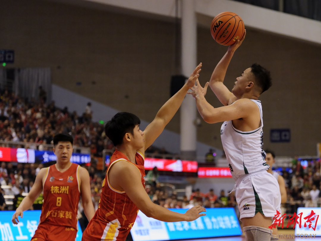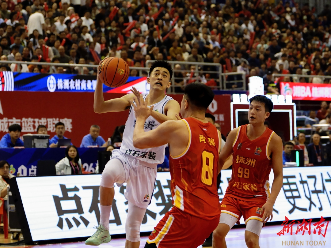 新湖南客户端4月18日讯(通讯员 董晓辰 记者 胡旻)4月17日晚,2026“湘BA”开始了第五轮的较量,株洲队在株洲体育中心主场迎战张家界队,最终,株洲队以87:64战胜张家界队,。 当晚,在另一场湘南巅峰对决中,郴州队主场迎战衡阳队,最终郴州队以91:72的比分力克衡阳队,取得球队五连胜。目前,郴州队和株洲队两队均以五战全胜战绩、积10分继续领跑积分榜。(本稿摄影/董晓辰)
