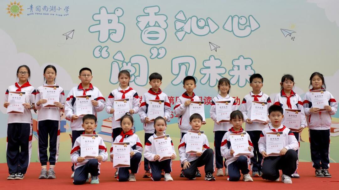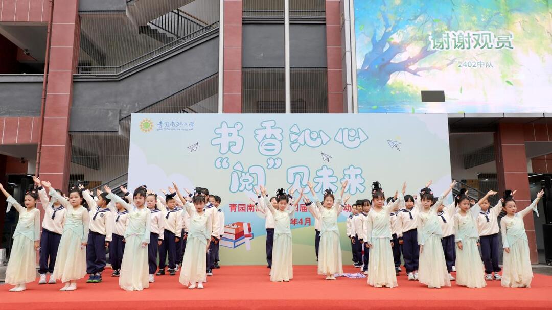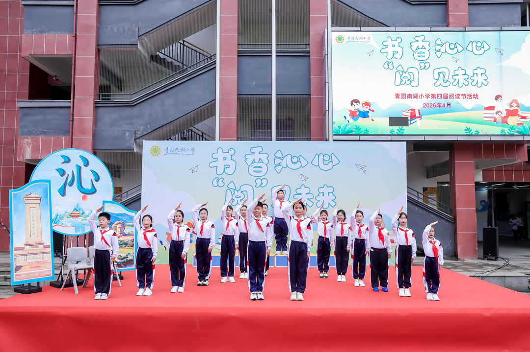 新湖南客户端4月18日讯(通讯员 李薇 李颖萍 摄影 陈建)春风漫卷书页,书香沁润童心。4月17日下午,长沙市天心区青园南湖小学操场上,一场以“书香沁心,‘阅’见未来”为主题的第四届读书节暨第七届“邮政杯”湖南日报朗读者主题活动温情启幕。全体师生与家长代表齐聚一堂,以诵读传情、以展演抒怀、以书香传爱,在文字的世界里共赴一场诗意盎然的阅读之约。