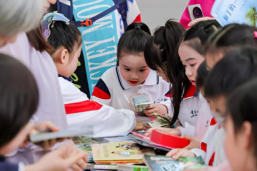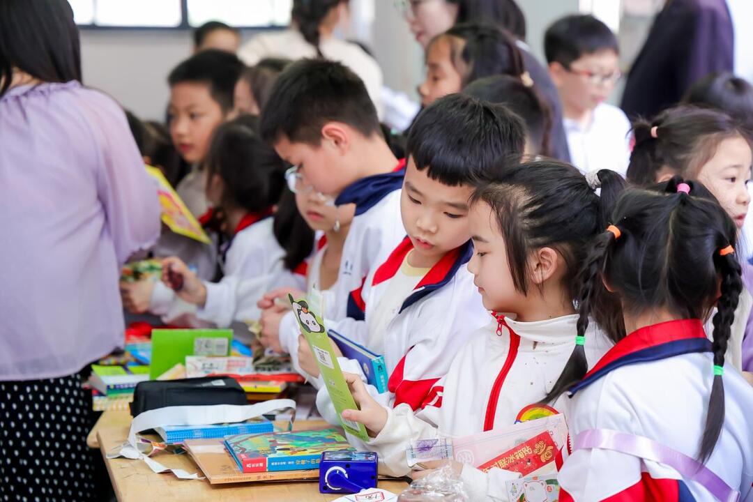 当舞台展演落下帷幕,备受期待的图书跳蚤市场热闹开场。各班摊位整齐有序,孩子们化身“小老板”,带着自己的闲置书籍前来交换、售卖,吆喝声、欢笑声此起彼伏。一本本带着墨香的书籍在孩子们手中传递,不仅实现了图书资源的循环利用,也让孩子们在实践中感受分享的快乐,让阅读的温暖传递到校园的每一个角落。