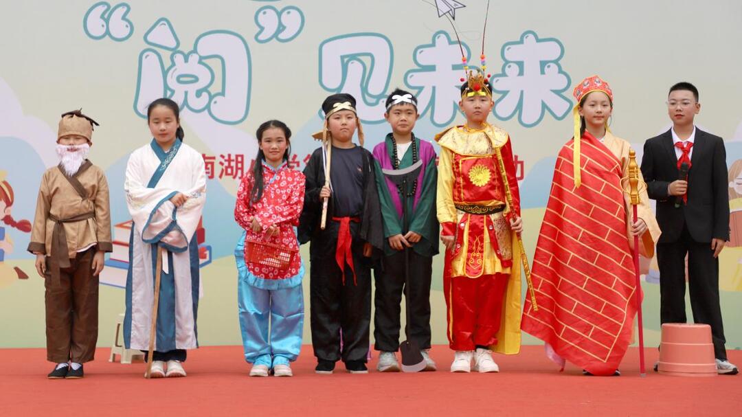 随后,各年级的节目展演轮番上演,孩子们以不同的形式演绎经典,让文字跳出书页、焕发光彩。三年级同学带来的《非遗里的中国》,以灵动的表演展现非物质文化遗产的魅力,在一颦一笑间传递文化自信;一年级小朋友化身森林里的小动物,在《动物王国开大会》的童趣演绎中,展现着对文字世界的天真想象;五年级同学演绎的《三打白骨精》,用生动的表演重现经典名著片段,将传统文学的魅力展现得淋漓尽致;二年级的《青葵寻春》、四年级的《书香少年》用好声音传递对文字的热爱与魅力;六年级的《两小儿辩日》用现代的方式和视角重新演绎古老的故事,令人振奋。校队带来的朗诵《南湖少年寻根记》,更是以铿锵有力的语调诉说少年担当,将现场氛围推向高潮。