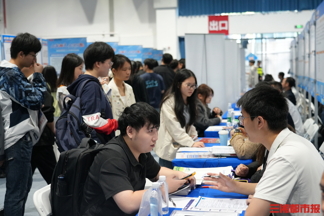 4月18日, “智汇潇湘 才聚湖南”2026年行动启动暨全省联动综合性招聘活动,在湖南师范大学主会场内特别设置AI赋能就业体验区,配备简历一体机、面试一体机及就业赋能一体机等智能设备,凭借便捷高效的求职服务吸引众多学子驻足体验、参与互动。