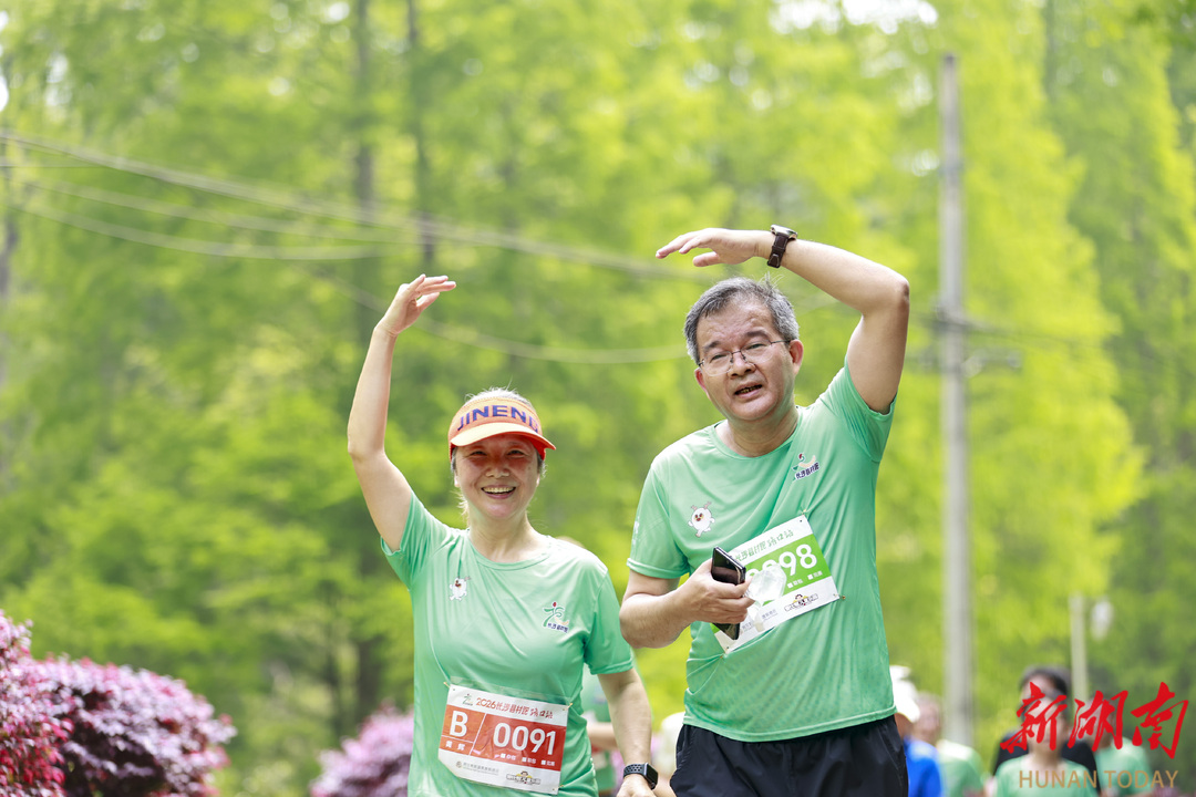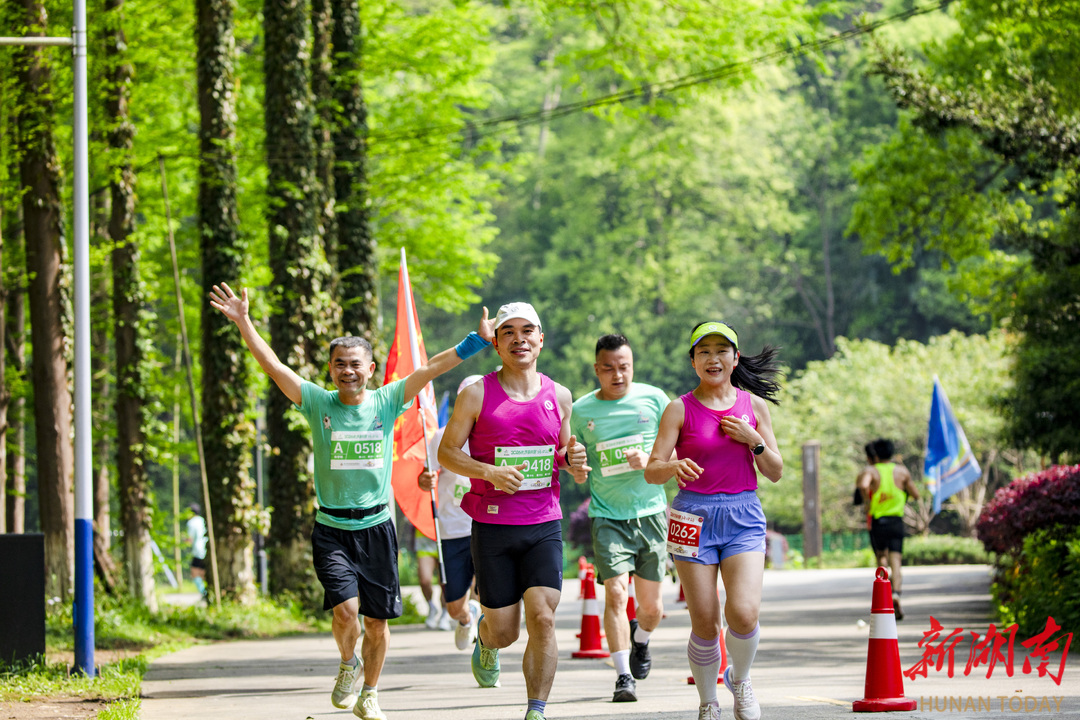 当日9时30分,随着一声汽笛长鸣,1000名参赛选手从阿可卑斯温泉度假酒店有序出发,奋力跑进素有长沙“九寨沟”之称的大山冲森林公园。赛道全程贯穿青山绿水,空气中负氧离子浓度极高,选手们在奔跑中沉浸式感受“人在画中跑”的诗意体验,不少跑友沿途驻足拍照打卡,定格生态美景与运动激情。赛道沿途设置了三支啦啦队,赛事氛围热烈。
