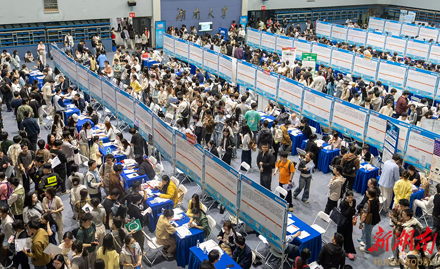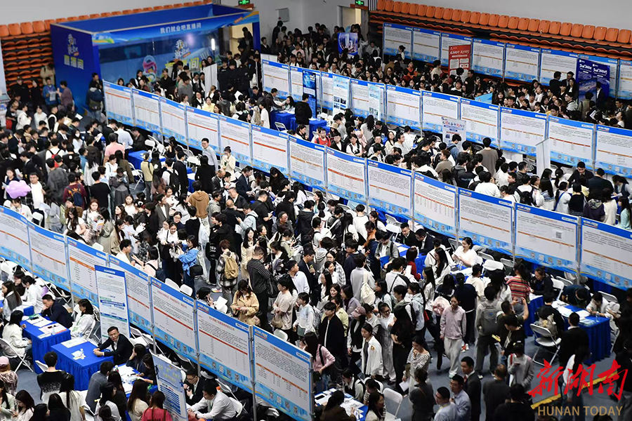 4月18日,“智汇潇湘 才聚湖南”2026年行动启动大会暨全省联动招聘活动正式启动。主会场长沙专场招聘人气高涨,655家用人单位集中提供优质岗位1.29万个,广揽八方英才扎根湖南,为全省高质量发展注入强劲人才动力。图为湖南大学体育馆招聘现场。湖南日报全媒体记者 傅聪 摄