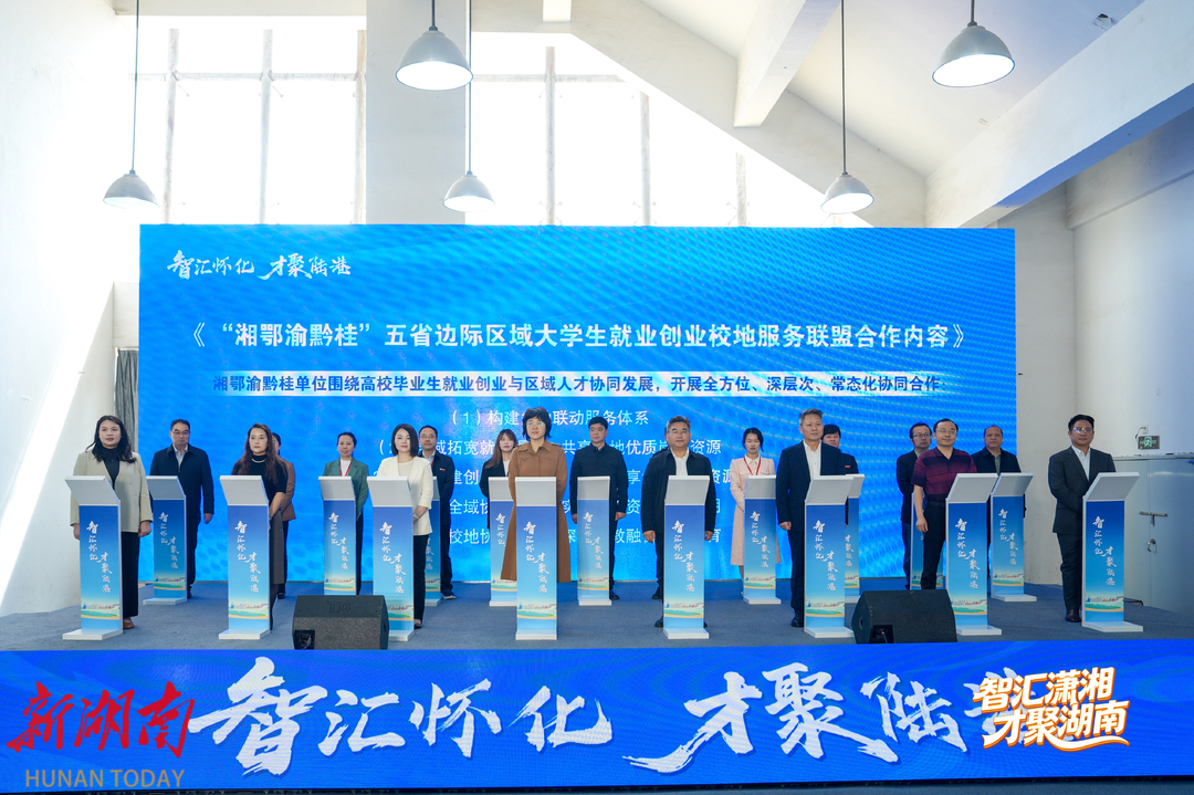一旁的活动推介会上,两轮集中签约引人注目。政府、高校、创业平台、协会四方共同签署“湘鄂渝黔桂”五省边际区域大学生就业创业校地服务联盟合作协议。“怀化正积极打造五省边际区域性中心城市,通过联盟内岗位库共享,让怀化及周边地区的高校毕业生拥有更广阔的择业范围,同时为企业跨区域引才降低成本。”怀化人社局党组书记、局长张娟表示。