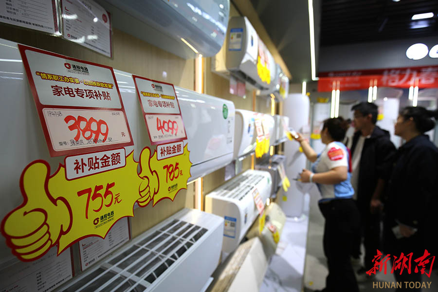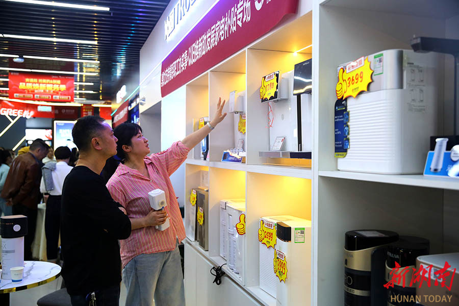 4月18日,机关企事业单位职工在咨询、选购家电产品。当天,邵阳市开展家电以旧换新“进机关”补贴专场活动。活动现场为机关企事业单位职工提供多重补贴,部分产品最高可享50%优惠,并配套免费拆机等服务,通过政企联动切实惠及职工群体,激发消费潜力。 曾勇 摄(湖南图片库)