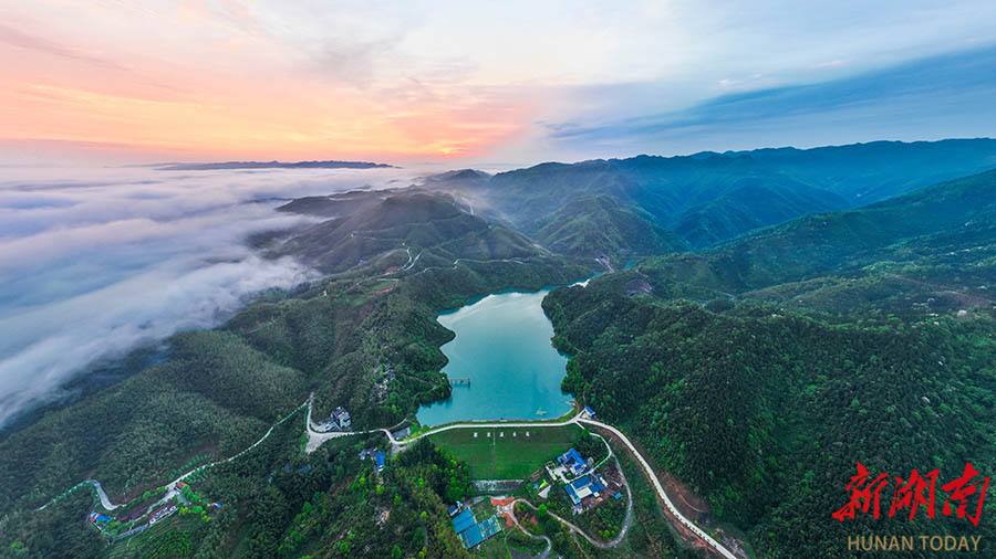 4月17日,怀化市泸阳国有林场,日出时分,云海、青山与碧水交相辉映,尽显诗意画面。近年来,该市通过完善林场规划、促进产业融合等举措,着力打造现代化国有林场示范样本。 吴立波 摄(湖南图片库)