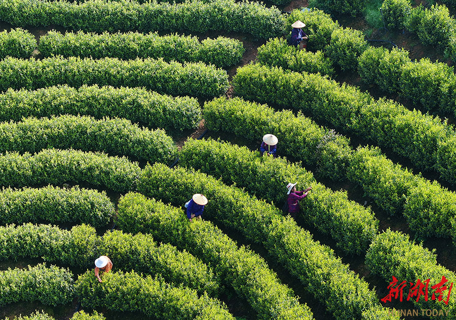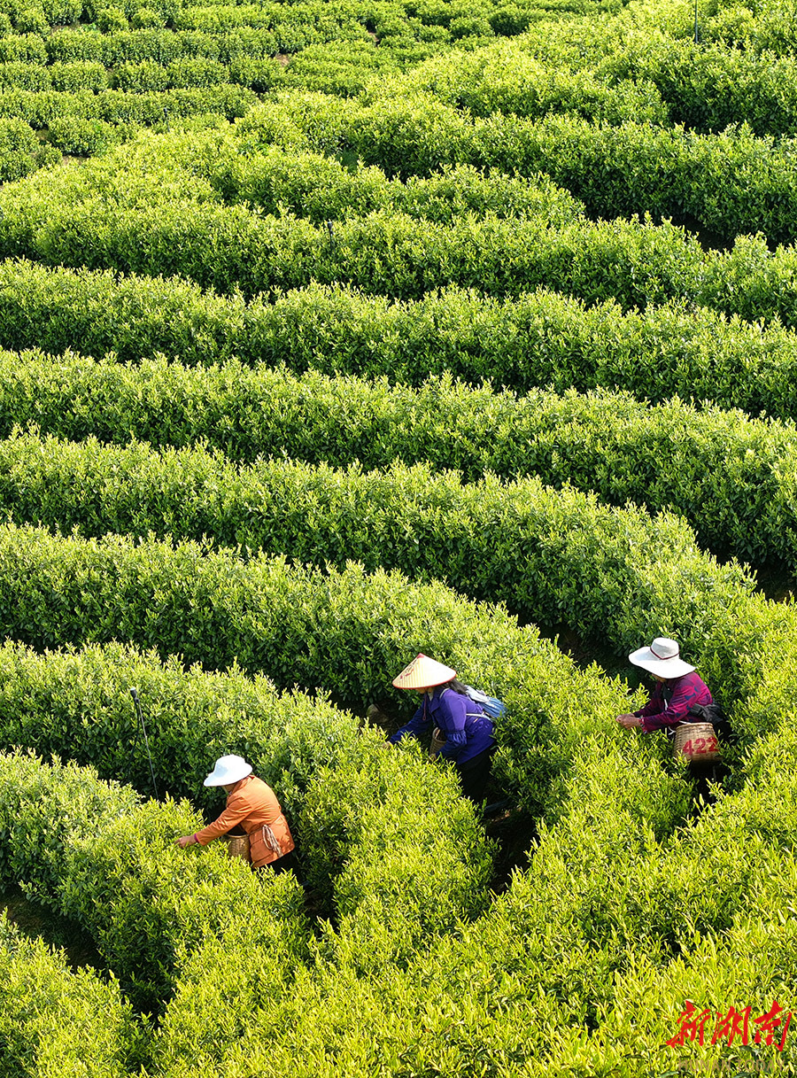 4月18日,衡山县开云镇,村民在茶场采摘春茶。当地茶农抢抓谷雨前晴好天气,在茶园中忙碌采收,呈现出一幅动人的春日采茶图景。 曹正平 夏建军 摄影报道(湖南图片库)