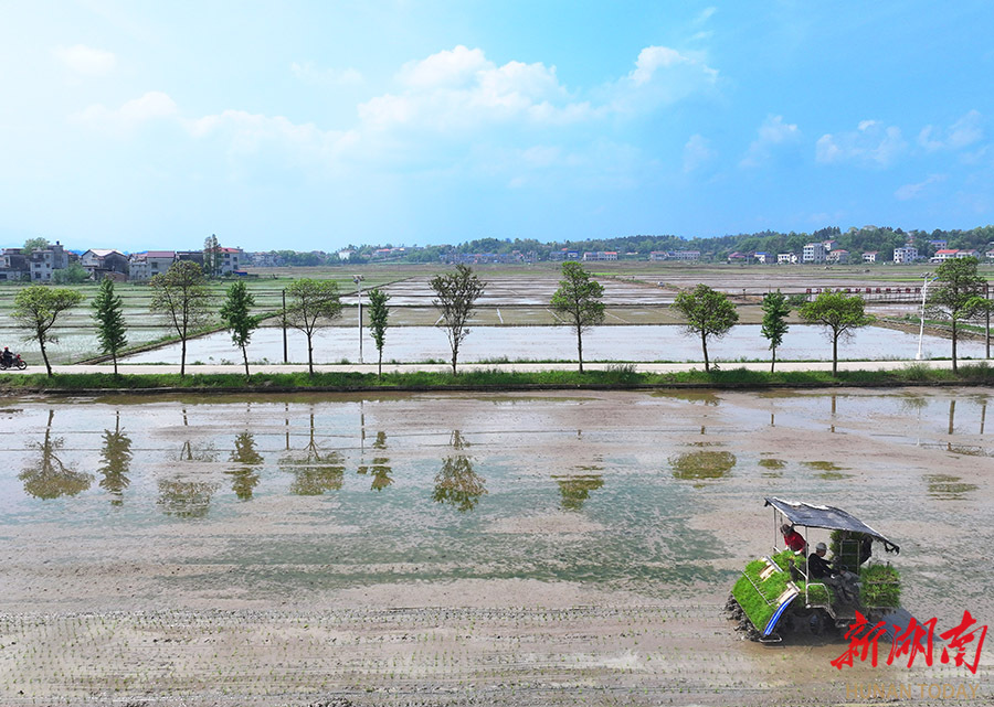 4月17日,资兴市唐洞街道镜塘村,农民驾驶插秧机在抢插早稻秧苗。眼下正值春耕生产关键时节,各地群众正抢抓农时,掀起春耕生产热潮,广袤田野一派繁忙景象,春日农耕画卷正徐徐展开。 李科 摄(湖南图片库)