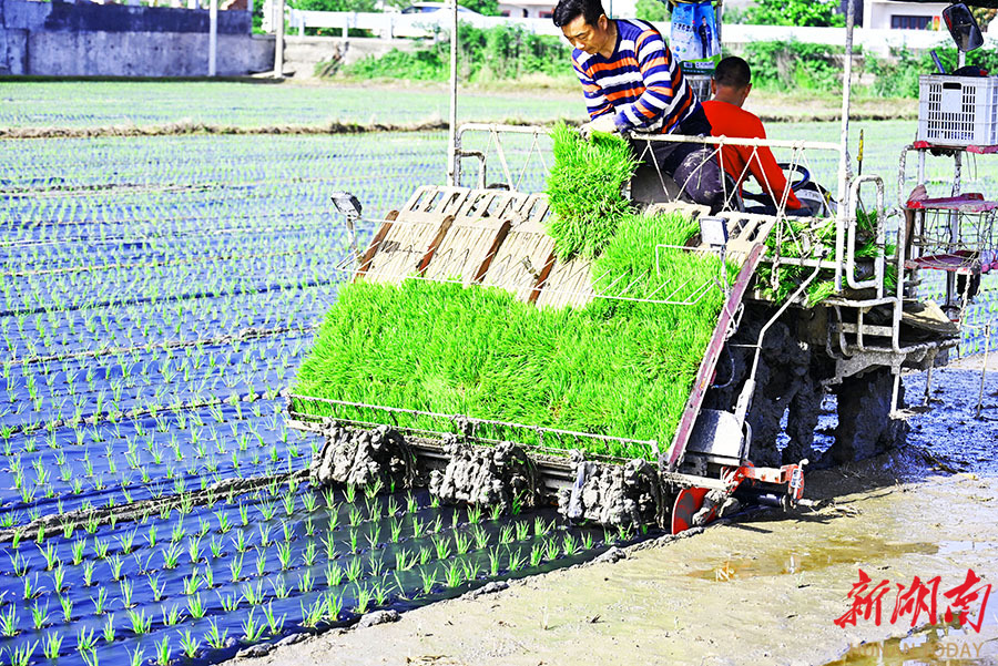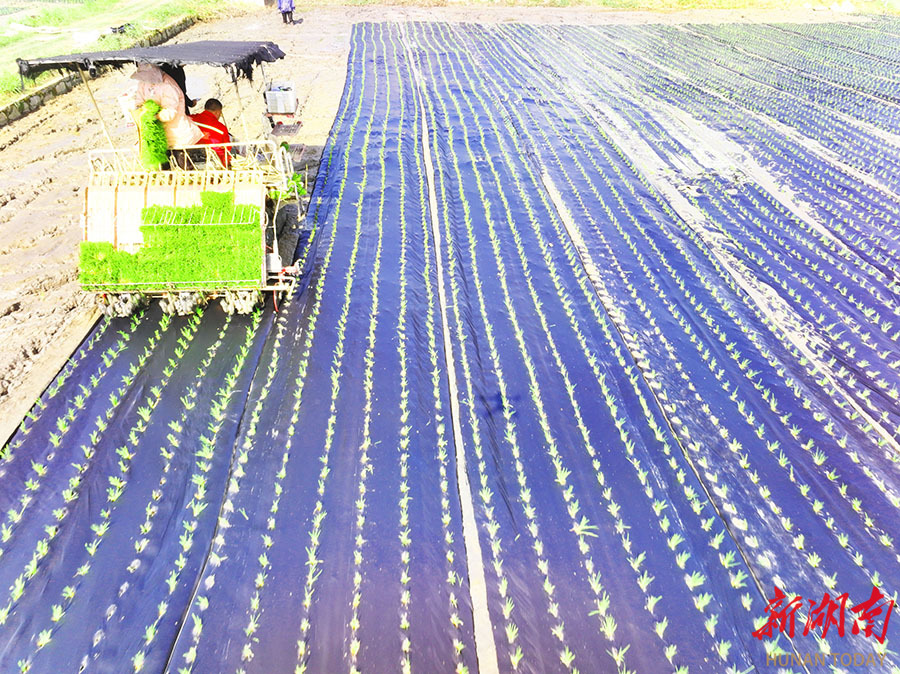4月18日,澧县大堰垱镇熊家湾村,农机手驾驶插秧机在进行覆膜移栽早稻秧苗。眼下正值春耕生产关键时节,各地群众正抢抓农时,掀起春耕生产热潮,广袤田野一派繁忙景象,春日农耕画卷正徐徐展开。 柏依朴 潘熔 摄影报道(湖南图片库)