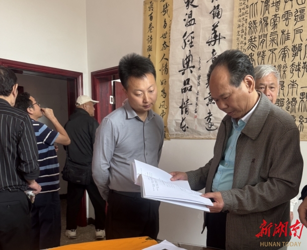 在株洲市诗词协会会长贺夏盛的带领下,采风团首站抵达泗汾镇金湖湾社区服务中心。步入金湖社区文化活动中心,乡土文脉与时代新风在此相融相生。农耕记忆与红色印记交相辉映,书画墨香、丝竹雅韵与邻里欢笑声交织,成为乡村文化振兴的生动缩影。这里既是百姓休憩娱乐的温馨港湾,亦是乡风文明的传承阵地,一砖一瓦皆藏温情,一墙一画尽诉乡愁。