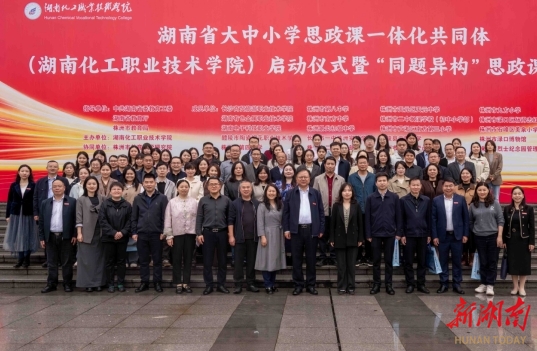湖南日报·新湖南客户端4月19日讯(通讯员 李丹阳 王智鑫)近日,湖南省大中小学思政课一体化共同体(湖南化工职业技术学院)启动仪式暨教学展示活动在学校图书馆2号报告厅举行。湖南省教育厅、株洲市教育局、共同体成员单位及相关院校领导,学校教务处、团委、马院等部门负责人,马院特聘教授、思政课教师齐聚一堂,共启思政教育一体化发展新征程。