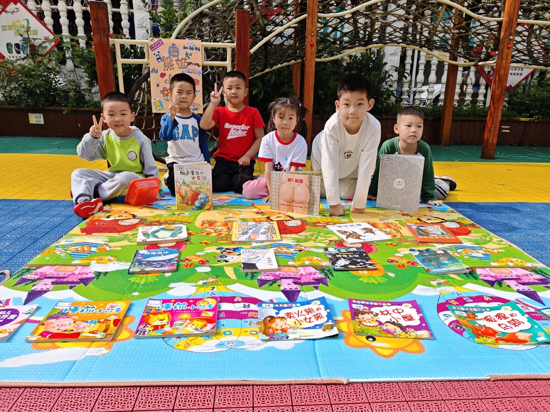 活动现场热闹非凡。大班孩子们早早带来家中闲置绘本,以小组为单位支起摊位,有模有样地当起了“小老板”。 “快来买呀,这本绘本超好看!”“只要5块钱!”稚嫩的吆喝声此起彼伏,他们热情地向中班的小顾客介绍内容,那股认真劲儿,丝毫不输真正的生意人。