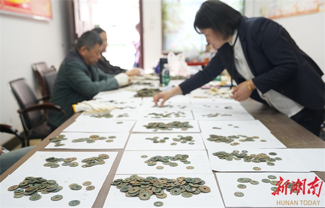 The photo shows identified ancient coins from various reign titles displayed at the Cultural Relics Protection Center of Wugang City. (Photo/Li Jian, Hunan Daily)
