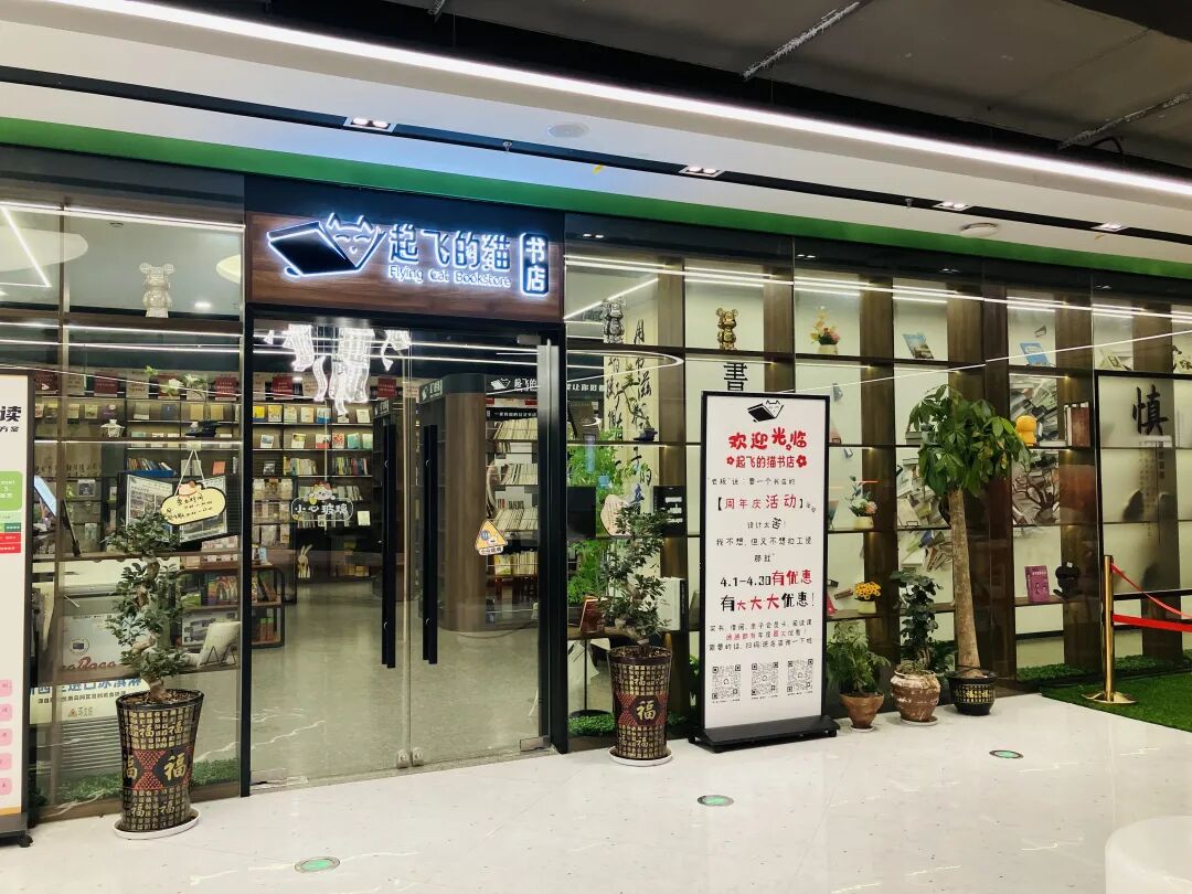 目前,起飞的猫书店在长沙拥有三家门店,分别位于开福区珠江星环、望城区月亮岛、雨花区树木岭,总经营面积1200余平方米,在册书籍100000册,书籍种类近万余种,在册会员近3000人,是长沙本土极具影响力的新概念社交书店品牌。