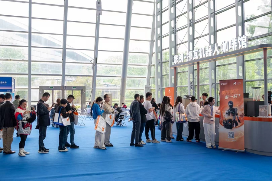 大会现场最具生活范儿的展区,当属擎朗智能与挪瓦咖啡的全球首次人形机器人+咖啡连锁深度联名。展台前观众排起长队,只为体验一把“赛博咖啡师”制作的热美式。XMAN-R1人形机器人以“特聘咖啡师”身份在岗,顾客通过iPad下单,机器人语音回应后,随即开启全流程咖啡制作:精准抓取纸杯、操作咖啡机萃取、平稳端送出品,全程行云流水,无人工干预。精细力控、多任务规划、人机安全交互的能力,在一杯咖啡中展现得淋漓尽致。