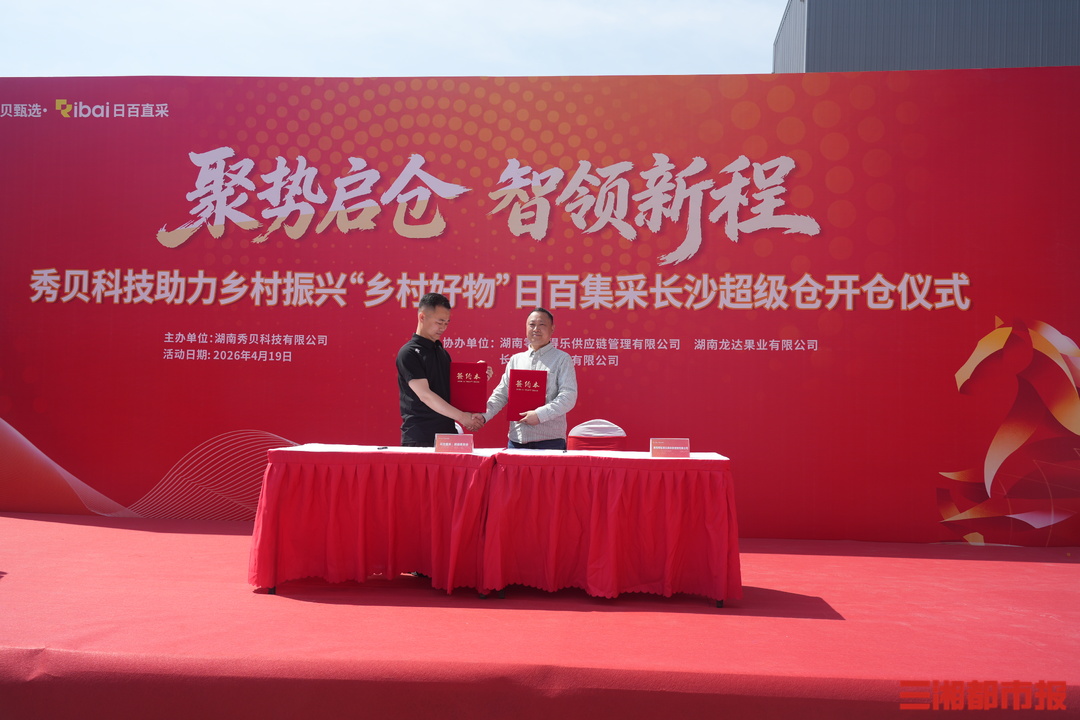 三湘都市报·新湖南客户端4月19日讯(全媒体记者 王翊玮 视频 朱帅铭)4月19日,湖南首个日百集采一体化农产品流通枢纽——“乡村好物”日百集采长沙超级仓正式启用。这座占地8000余平方米、能同时容纳30多挂车货物的超级枢纽,以日均300吨、最高500吨的吞吐能力,打破传统流通壁垒,为湘赣乡村振兴按下“快进键”,让江西田间美味最快24小时端上星城餐桌。