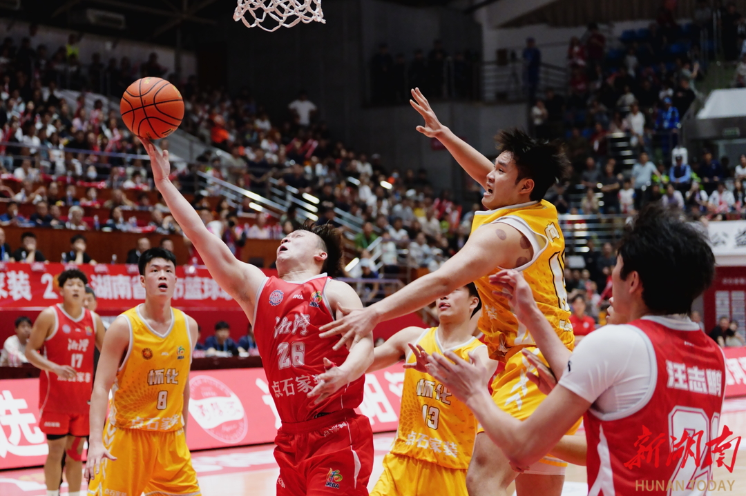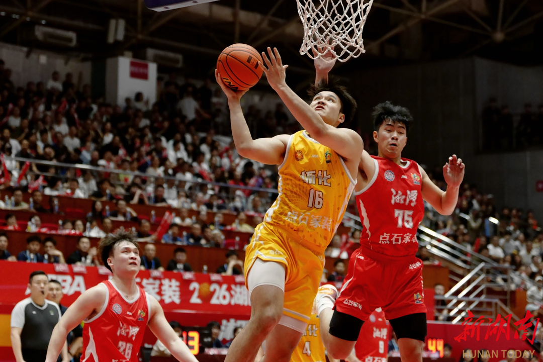 新湖南客户端4月20日讯(通讯员 董晓辰 记者 胡旻)4月19日晚,2026“湘BA”的第五轮较量中,湘潭队在湘潭大学体育馆主场迎战怀化队,最终,湘潭队女帅赵伟丽带队以78:67战胜怀化队,豪取四连胜。 当晚,主场作战的湘潭队状态火热,上半场以42:37取得领先优势。下半场双方易边再战,怀化队调整战术打出流畅配合,第三节一度以56:55完成反超;末节,湘潭队强势复苏,三分火力全开,并将比分定格在78:67。双方共同为观众奉献了一场精彩纷呈的篮球盛宴。(图为比赛现场。本稿摄影/董晓辰)