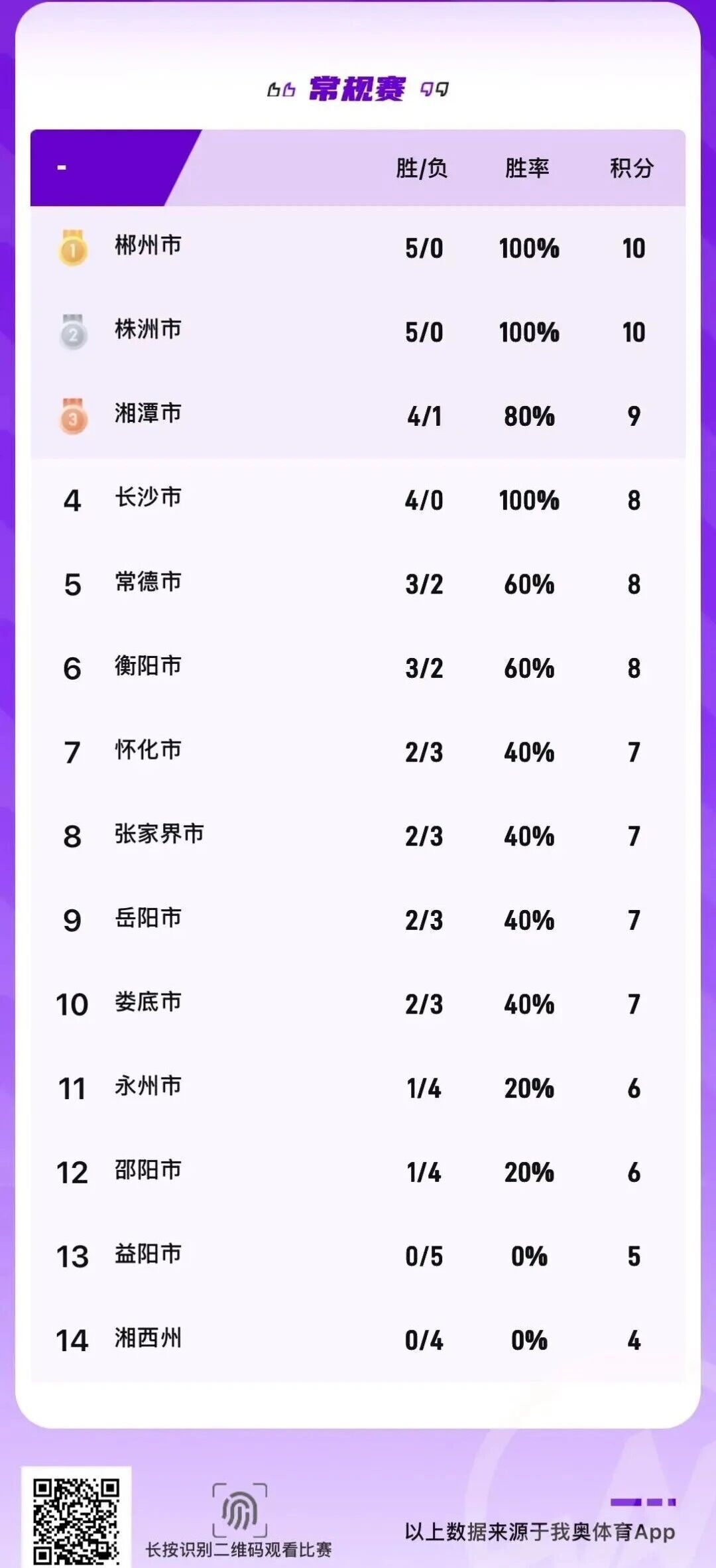 湖南日报·新湖南客户端4月20日讯(记者 蒋诗雨)4月19日晚,2026年湖南省城市篮球联赛(湘BA)湘潭队主场迎战怀化队,湘潭队女帅赵伟丽带队高歌猛进,战胜怀化队豪取四连胜。至此,湘BA比赛积分榜刷新,湘潭队以4胜1负、积分9分的成绩冲进榜单前三,恭喜!