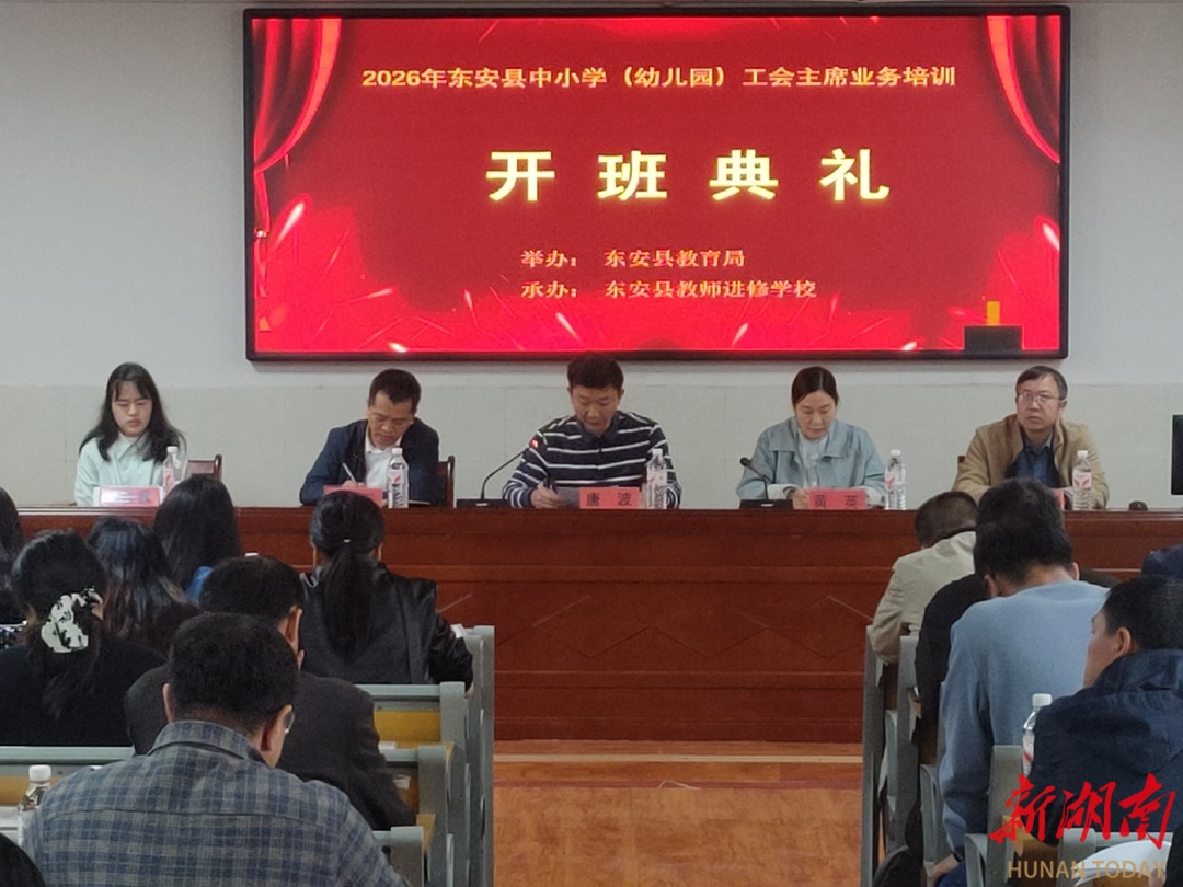 科教新报·新湖南客户端讯(通讯员 蒋纯珍 龙国雄 )为进一步提升教育系统工会干部履职能力,更好服务广大教职工,4月17日,东安县举办2026年全县中小学(幼儿园)工会主席业务专题培训,全县各中小学(幼儿园)工会主席共75人参加。