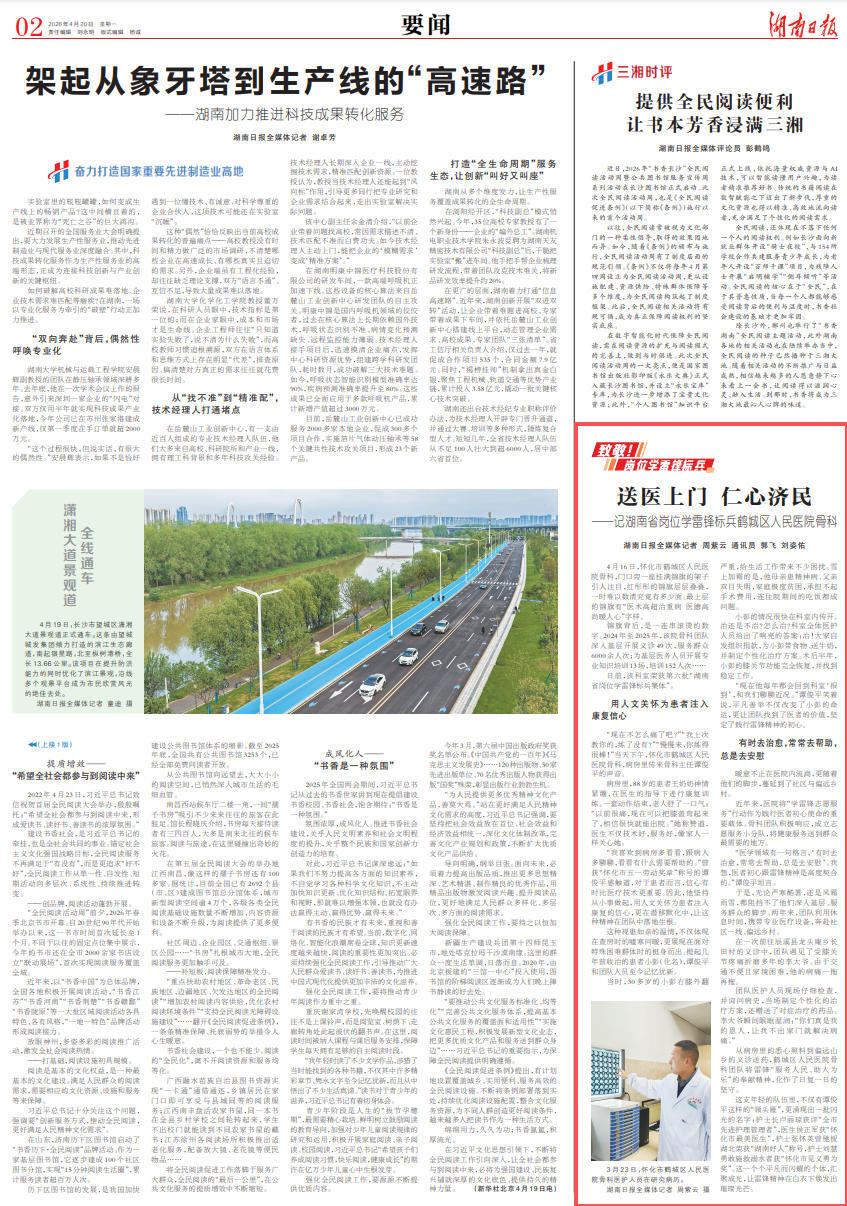 “我喜欢到病房多看看,跟病人多聊聊,看看有什么需要帮助的。”曾获“怀化市五一劳动奖章”称号的谭俊平感触道,对于患者而言,信心有时比医疗技术更重要。因此,他坚持从小事做起,用人文关怀为患者注入康复的信心,更在潜移默化中,让这种精神在团队中落地生根。