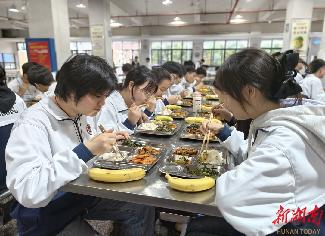 下课铃声划破校园的宁静,耒阳市东江中学食堂里瞬间升腾起浓郁的饭菜香。