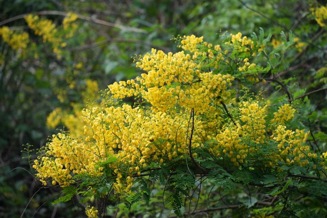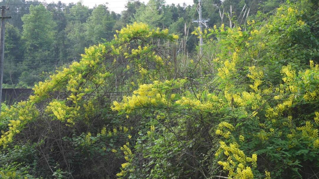 云实是常见的乡土藤本植物,多生长在山坡灌丛、山谷河旁等地,喜光喜暖,适应湿润环境,花期从4月持续至10月。其叶绿花黄、叶形雅致,不仅观赏性强,也是传统药用植物。