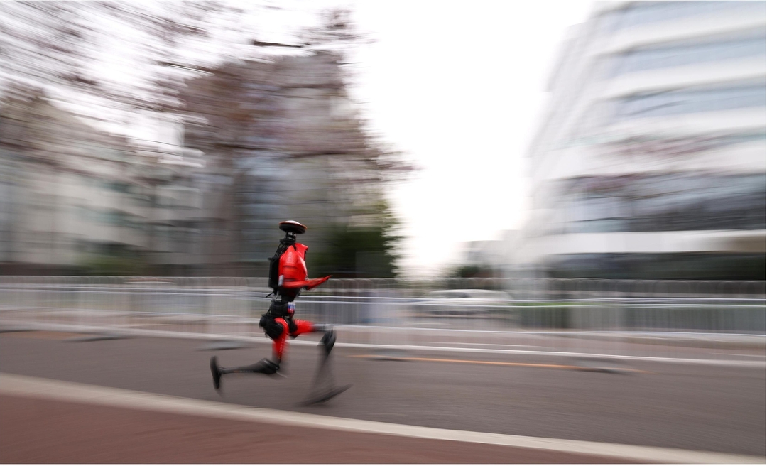 赛场上,参赛队各显其能:有的机器人势如闪电、速度惊人,有的机器人跑姿流畅、高度拟人,展现出不同的技术特点。