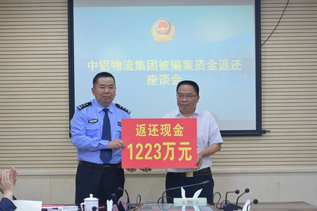 4月18日,这笔1223万余元被骗货款如数返还给中铝物流集团重庆有限公司。