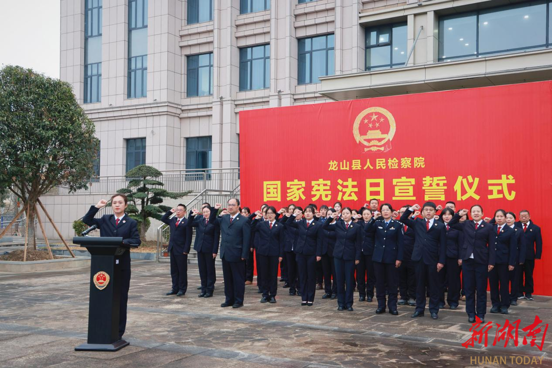 每年的国家宪法日,龙山县检察院组织全体检察人员,举行庄严宣誓仪式。