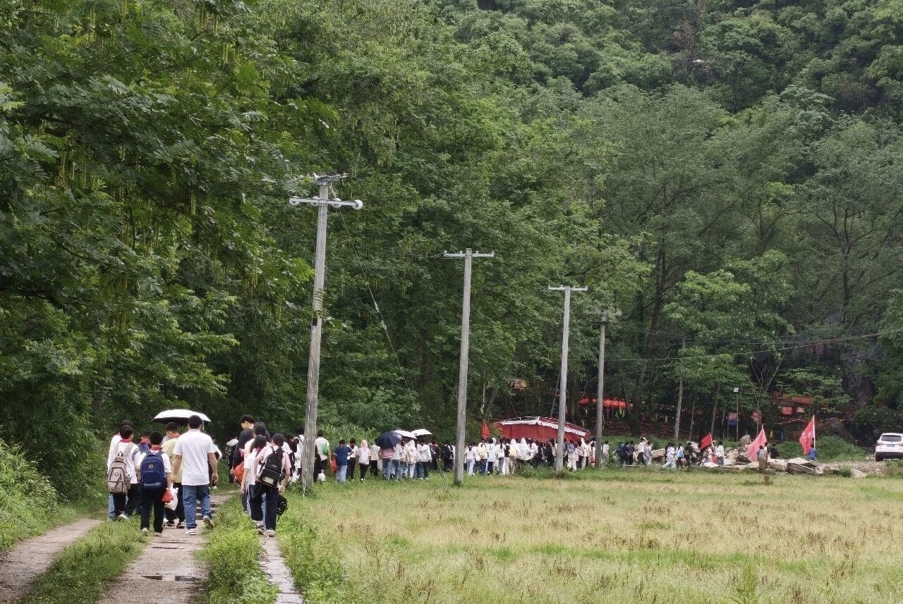 抵达川岩景区后,师生们在天然溶洞开展户外思政课。田振和老师以溶洞与河流的关联设喻,将家乡山水与成长之路相连,勉励同学们胸怀家国、勤学笃行。针对即将升入初中的六年级学生,他结合自身经历与身边案例,鼓励孩子们直面成长挫折,在起伏中学会沉稳,在挫折中总结经验。同时,布置“为家中做半小时家务”的实践任务,让孩子们在劳动中回报亲情,让红色记忆与当下生活产生真切共鸣。