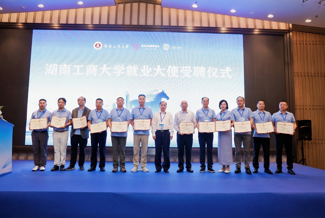 峰会现场举行了湖南工商大学校友就业大使受聘仪式,廖志坤书记为12位优秀校友企业家如谭宪才、黄星耀、魏宏章、叶红昕、范建文、罗军强、谢礼军、李明、聂康健、谢冠雄、袁智敢、孔乂国等颁发聘书。以校友就业大使为纽带,进一步打通校企人才供需通道,既为学校毕业生搭建高质量就业平台,也为校友企业及湖南本土产业输送高素质专业人才,构建起人才回乡、项目回归、产业兴湘的良性发展格局。