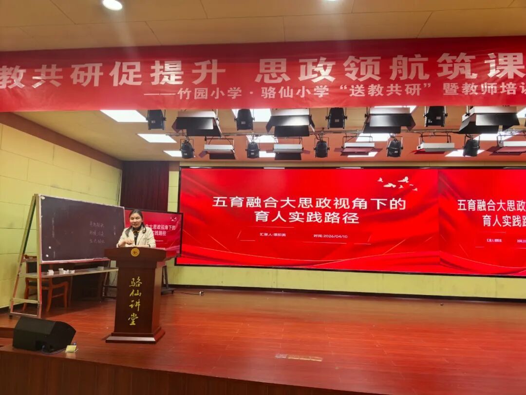 研讨交流后,竹园小学谭阳英书记带来专题讲座《五育融合大思政视角下的育人实践路径》,谭阳英结合实践案例,深入解读大思政育人理念,为一线教师落实五育融合、提升育人质量提供可借鉴的实践策略。
