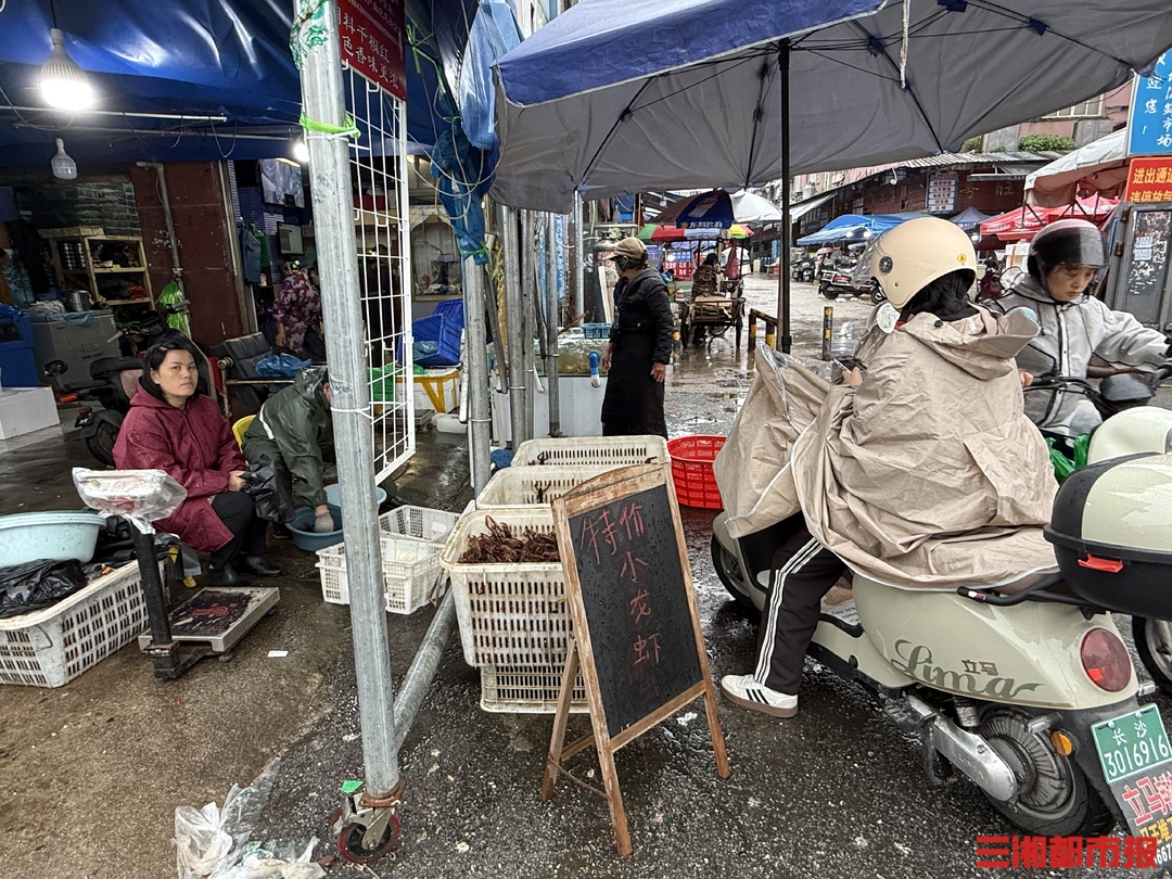 4月20日,记者来到马王堆海鲜水产市场,天飘着小雨,也影响不到消费者购买小龙虾的热情。在这里,小龙虾按个头大小被分为345钱、567钱等规格进行售卖。