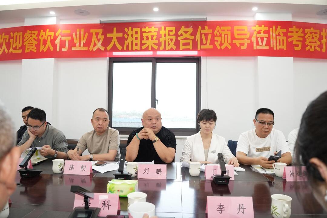 中国饭店协会青年名厨专委会执行主席、北京湘菜协会执行会长、北京珑湘荟董事长刘鹏,湖南日报大湘菜报班子成员丁伟,北京湘菜协会秘书长、北京喜湘宴董事长易建辉率队到访。长沙市供销合作总社科技发展处处长黎元琪,望城区农业农村局党组成员、副局长李丹,望城区供销社理事会副主任李科,部分北京湘菜协会会员企业、湖南本地知名湘菜企业聚味瞿记、小周庄、筱湘溪以及望城区多家农产品加工、种养企业负责人参与座谈。
