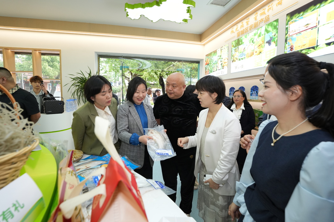 座谈会开始前,考察团一行在望城区农副产品集采中心总经理易江的陪同下,实地参观了望城区农副产品集采中心。展厅内,乌山贡米、白姑娘辣椒、望城鲌鱼等一众极具地方特色的优质农产品整齐陈列,吸引了众人目光。考察团边走边看,详细了解产品的种植、养殖环境、生产工艺及品质特色,并现场开展产品品鉴与自由对接。新鲜脆嫩的时蔬、肉质紧实的水产、香气浓郁的粮油,每一款地道的望城农产都给考察团留下了深刻印象。