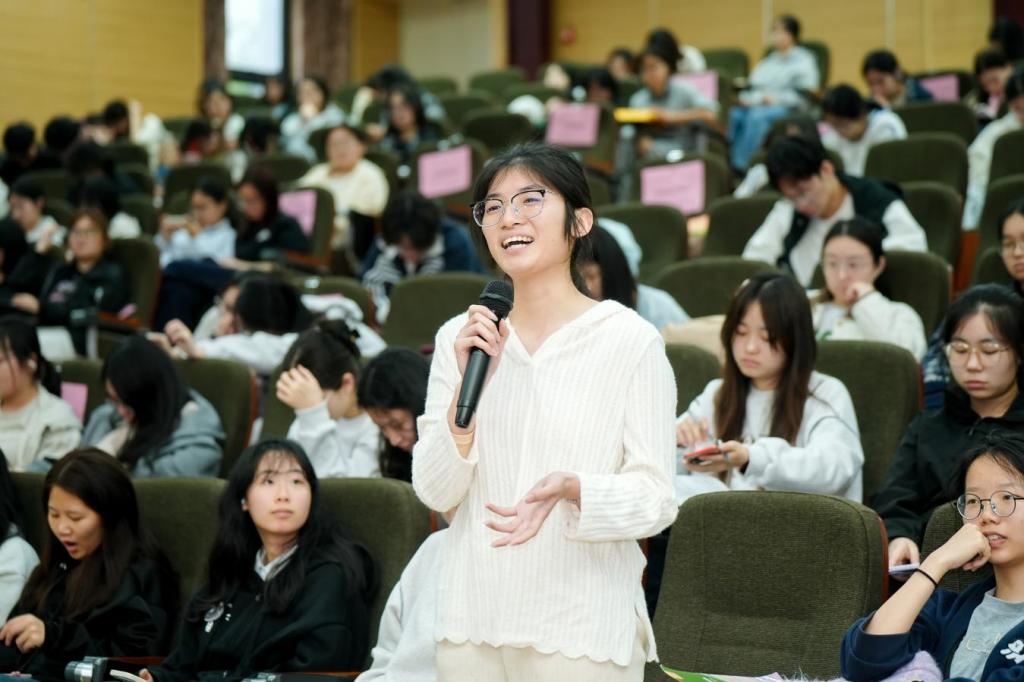 互动交流环节,同学们围绕IP定位、产品研发、直播电商、供应链管理等问题踊跃提问,黄煜韬结合自身实践经验逐一细致解答,给出针对性、可落地的创业建议,现场氛围热烈,交流深入。