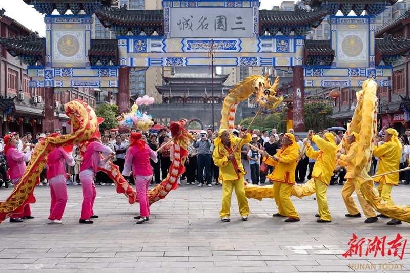 4月19日,市民在观看舞龙表演。当天,2026年桂阳县民俗文化展演系列活动正式拉开帷幕。活动涵盖“三月三”晒歌会、戏曲展演、龙狮表演等,让游客从早到晚都能沉浸式感受民俗文化的独特魅力。欧阳常海 摄(湖南图片库)
